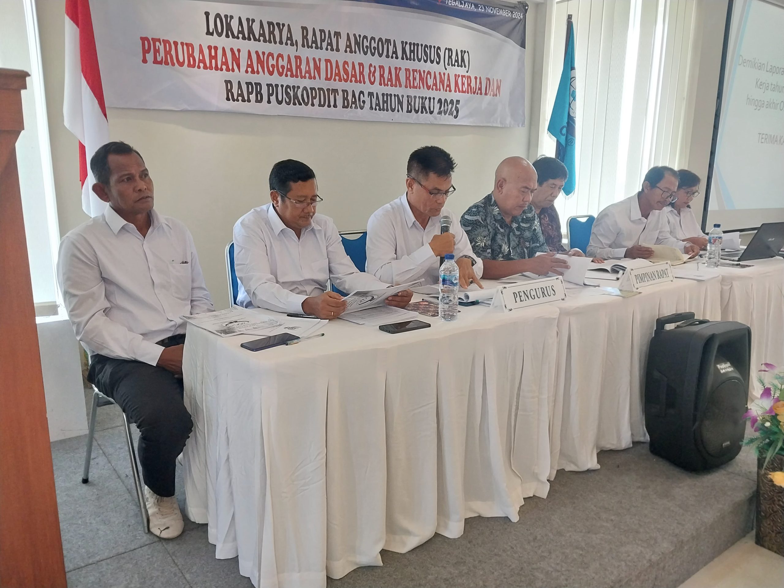 Puskopdit Bali Artha Guna menyelenggarakan Lokakarya, Rapat Anggota Khusus (RAK) Perubahan Anggaran Dasar & RAK Rencana Kerja dan RAPB Tahun Buku 2025 pada hari Sabtu, 23 November 2024 di Aula Kantor Puskopdit Bali Artha Guna. Adapun peserta yang hadir sejumlah 46 orang dari 18 primer anggota beserta Pengurus, Pengawas dan perwakilan Manajemen Puskopdit Bali Artha Guna. Acara dimulai pukul 08.30 Wita yang diawali dengan doa bersama, selanjutnya menyanyikan lagu Indonesia Raya, Mars Koperasi dan Hymne Kopdit. Kemudian sambutan oleh Ketua Puskopdit Bali Artha Guna, I Ketut Murdana sekaligus membuka acara secara resmi.