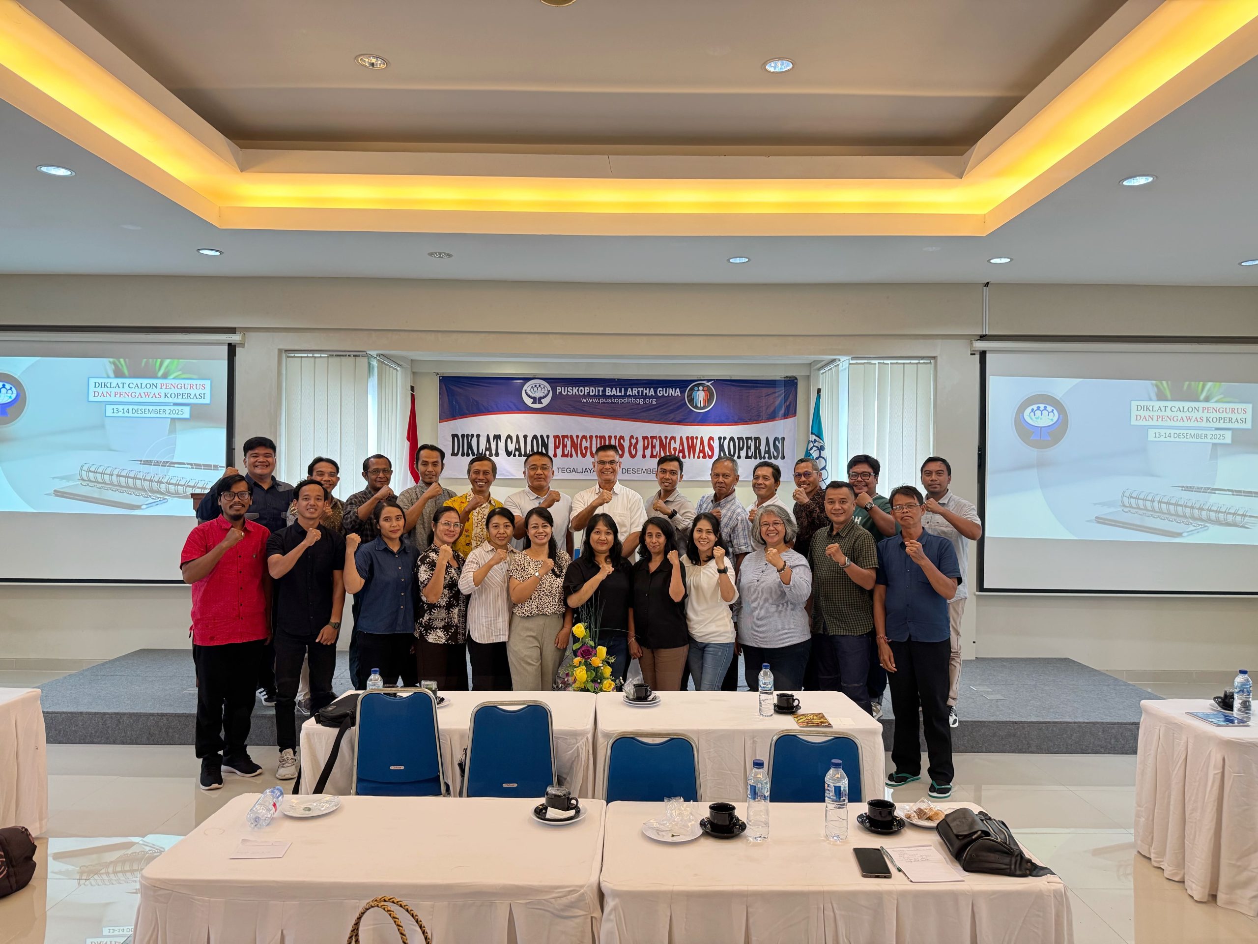 Pengurus dan Pengawas Koperasi merupakan wakil dari anggota yang dipilih dari dan oleh anggota dalam Rapat Anggota. Sebagai pihak yang dipercaya oleh anggota untuk menjalankan koperasi, maka Pengurus dan Pengawas wajib melaksanakan harapan dan amanah para anggota dengan baik. Menyikapi hal tersebut, maka Puskopdit Bali Artha Guna mengadakan “Diklat Calon Pengurus dan Pengawas Koperasi” tanggal 13-14 Desember 2025 di Ruang Diklat Lt. III Kantor Puskopdit Bali Artha Guna. Pelatihan ini dihadiri oleh 23 peserta dari 11 koperasi primer anggota.
